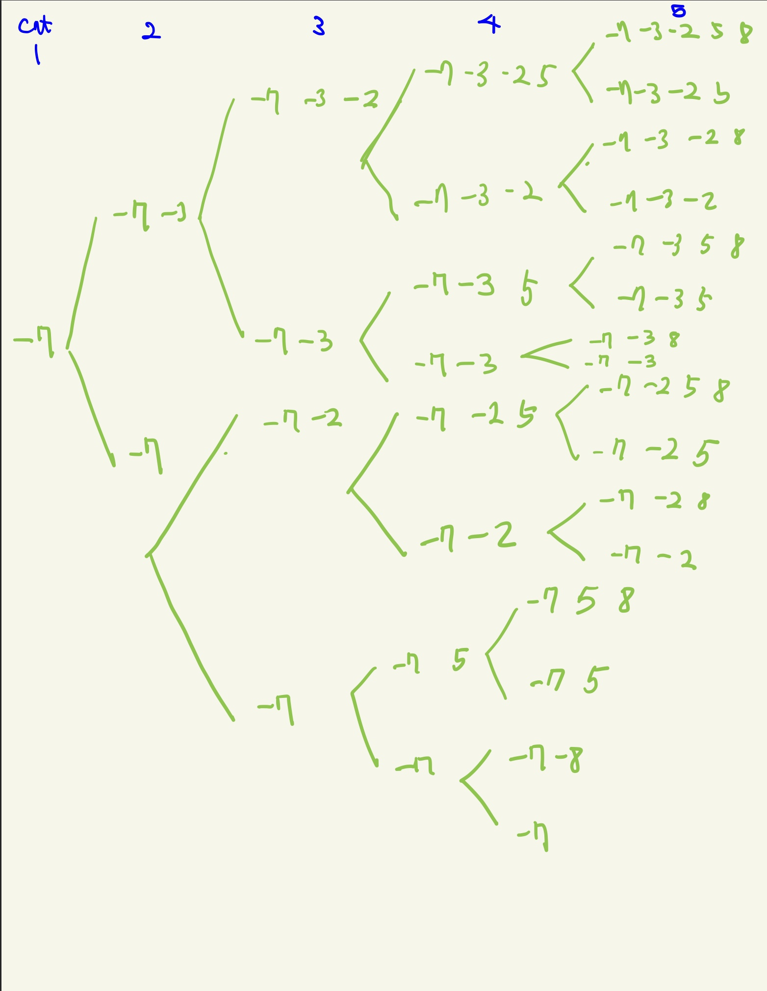 cnt가 1 일때 -7을 포함하는 경우만 쓴 것이다. 포함하지 않는 경우도 생각해서 총 32가지 = 2^5가 나온다.