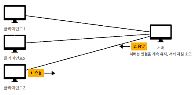 클라이언트는 서버에 요청을 보내고, 응답을 대기한다.
