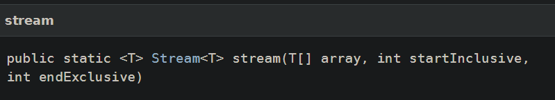 위와 동일하게 스트림을 생성하는 메서드이지만, 배열의 start, end index를 파라미터로 사이의 값만 스트림에 저장할 수 있다.