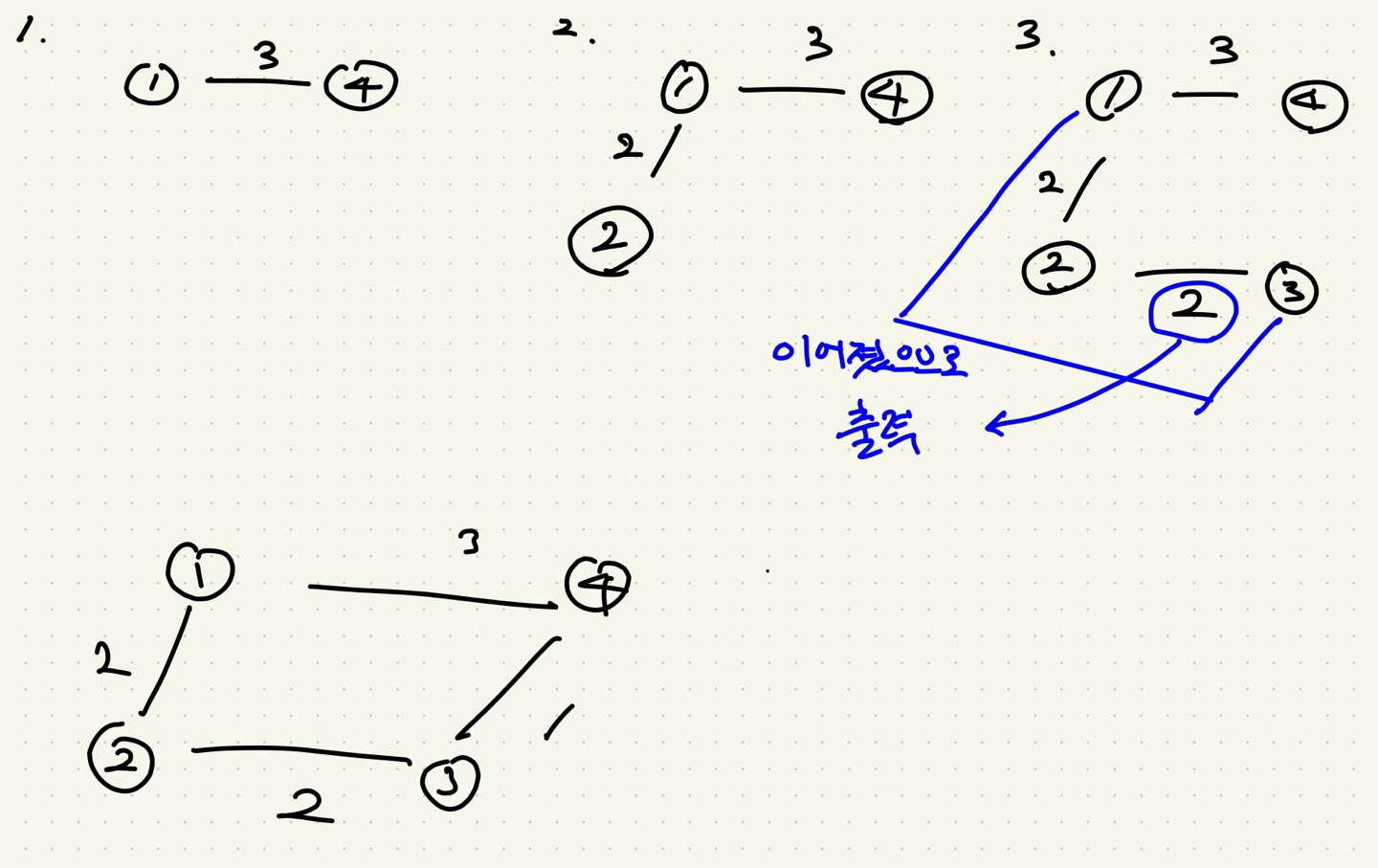 정렬된 노드들을 앞에서부터 순차적으로 union 한다.
