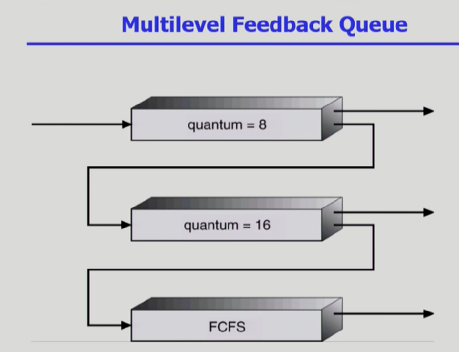 - starvation을 방지하기 위해 우선순위가 낮은 큐에서 너무 오래 대기하는 프로세스가 점차 우선순위가 높은 큐로 이동할 수 있습니다