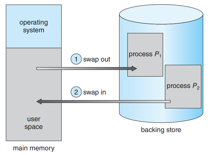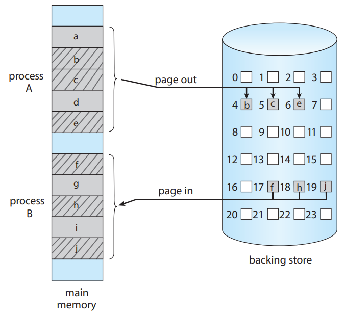 backing store -> 메모리 : page in - 가상 메모리와 함께 잘 작동함