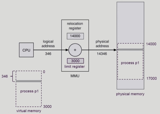 - 실행시간 바인딩 방식이 가능하기 위해서는 base register, limit register를 포함한 MMU라는 하드웨어적인 지원 필요