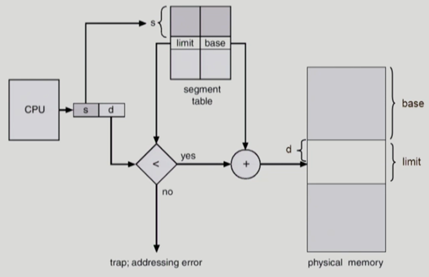 - 논리적 주소의 세그먼트 길이가 limit보다 클 수 없다.