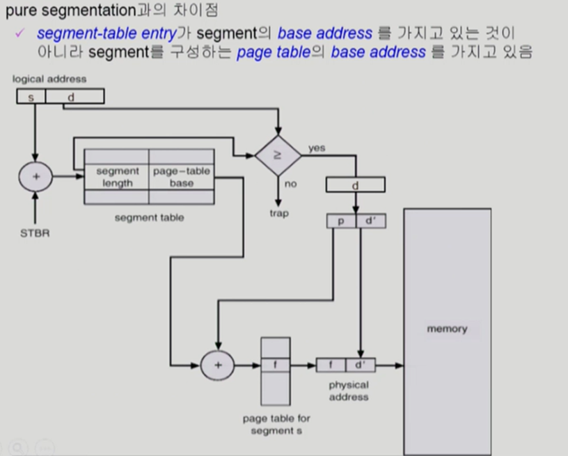 담겨 있다. ( 세그먼트가 통째로 메모리에 올라가기 때문) - 해당 방법은 세그먼트 하나가 여러 개의 페이지로 나뉘기 때문에