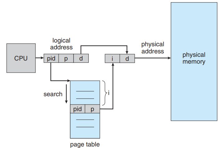 - 따라서 CPU가 주소를 참조할 때마다 물리적 메모리의 어느 위치에 존재하는지 주소 매핑 테이블 필요