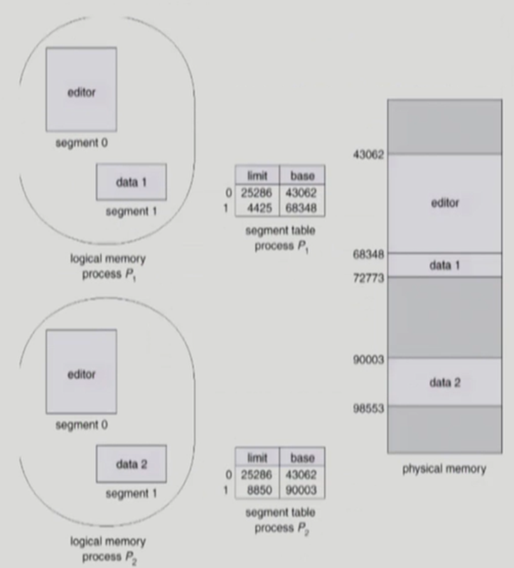 페이징과 마찬가지로 같은 논리상의 주소를 가지며, 같은 세그먼트 번호를 가진다.