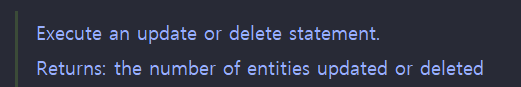 - 삭제되거나 업데이트 된 엔티티의 개수를 반환한다