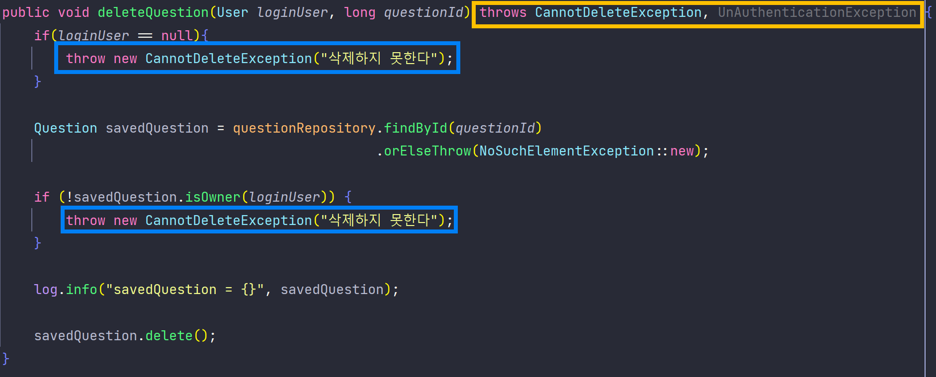 - 이러한 exception일 경우에는 method signature에서 throws를 명시해야한다