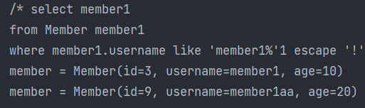 - 쿼리를 보면 정확히 member1이 일치하는 경우만 가져온다