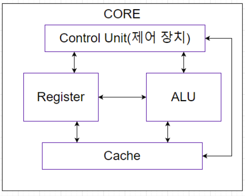 결국 CPU는 산술, 논리 등과 같은 작업을 하라고 명령을 받는 것이고, 명령을 처리해주는 것은 코어라고 할 수 있습니다.