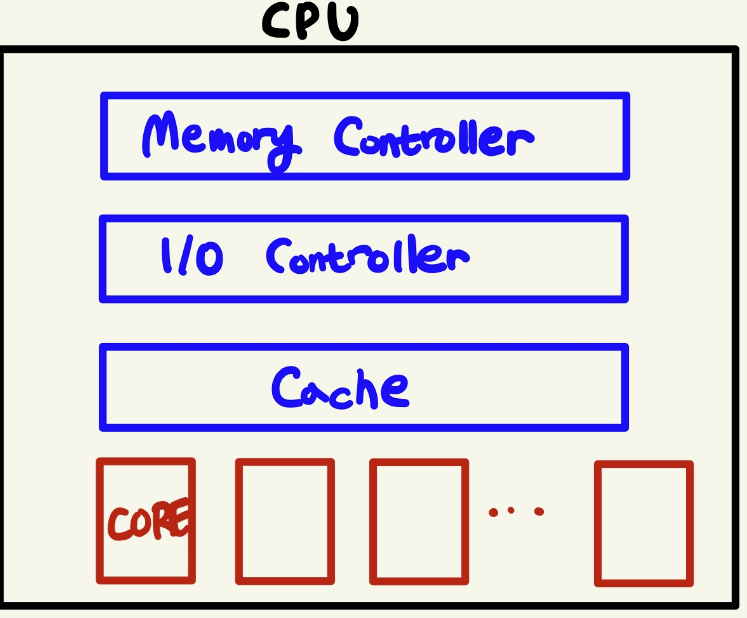 코어가 실제로 작업을 처리하는 동안 CPU는 코어를 제어하고 다른 컴퓨터 시스템 컴포넌트의 데이터를 코어에게 전달합니다.