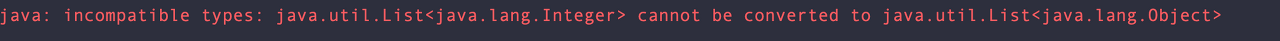 그래서 List<Integer>는 List<Object>로 convert 될 수 없다는 에러가 발생하게 됩니다.