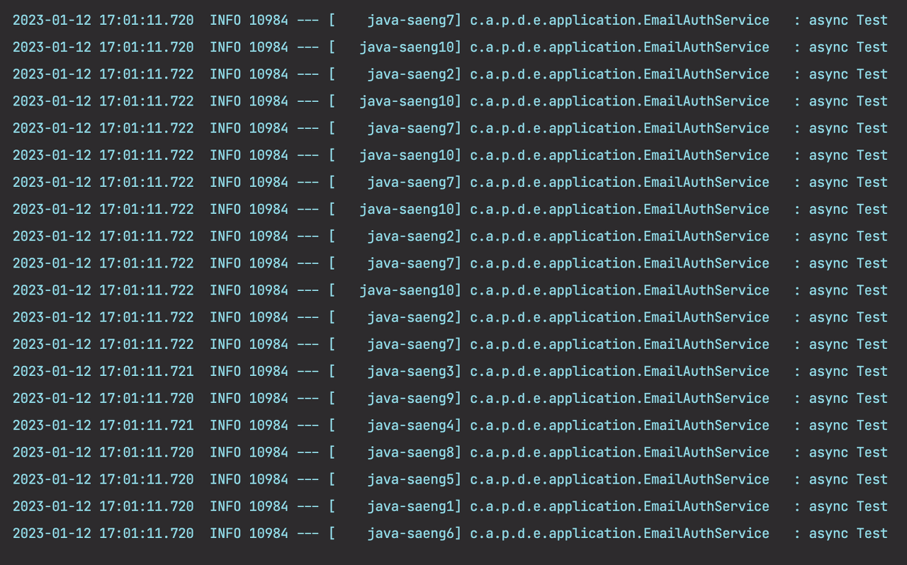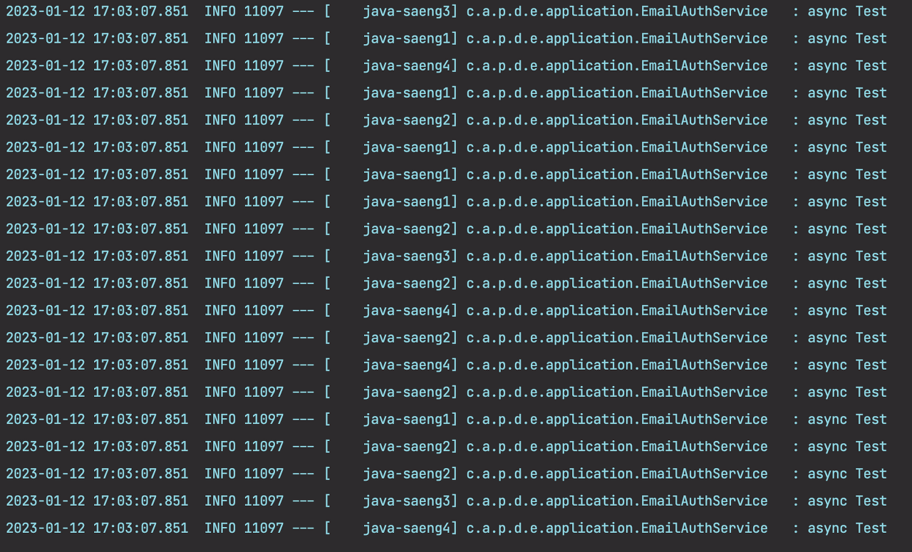 executor.setThreadNamePrefix("java-saeng"); //스레드 풀에서 생성된 스레드의 이름 prefix
