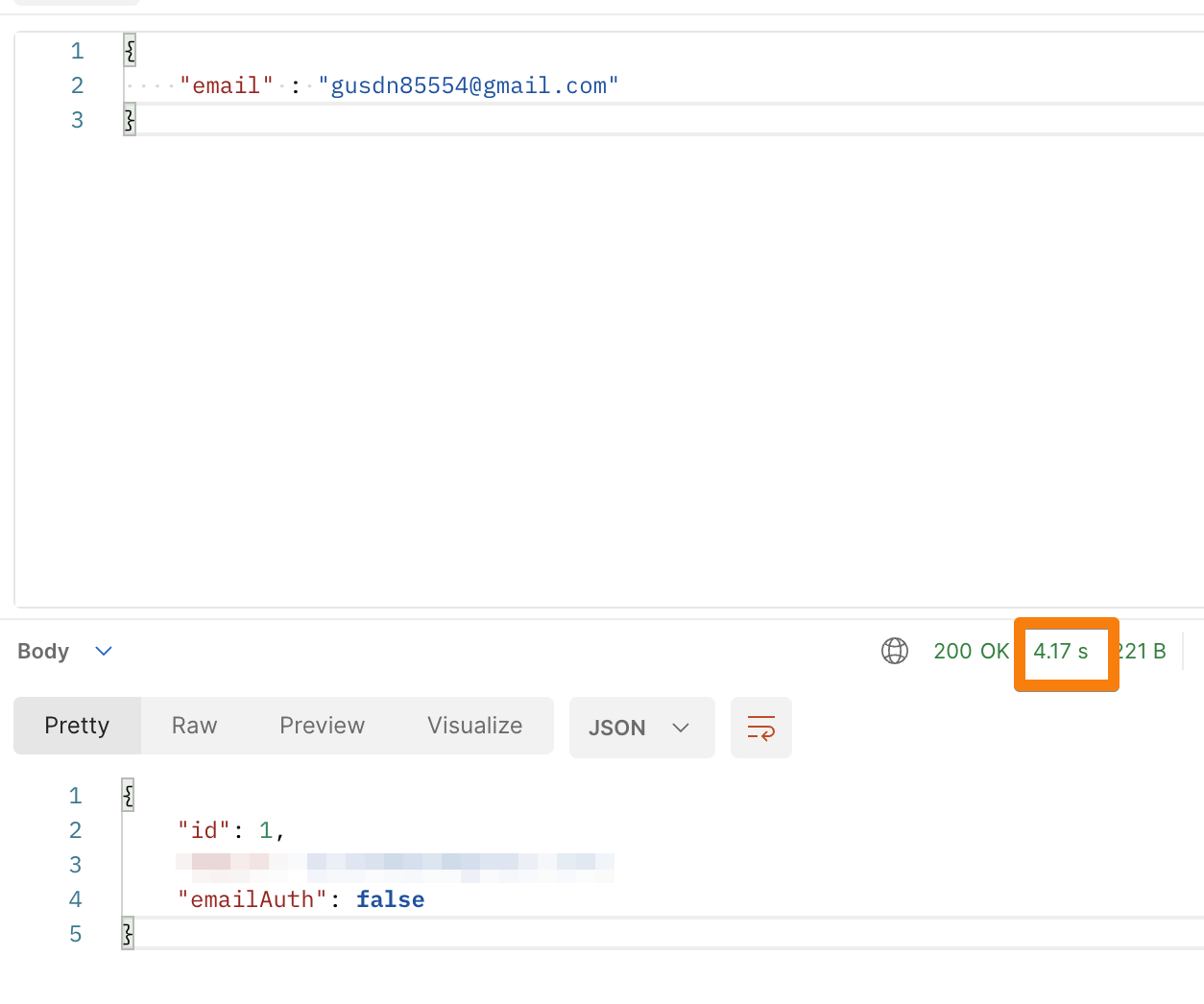 postman을 통해 요청을 보낼 시 약 4초 정도 가량 걸리게 됩니다.