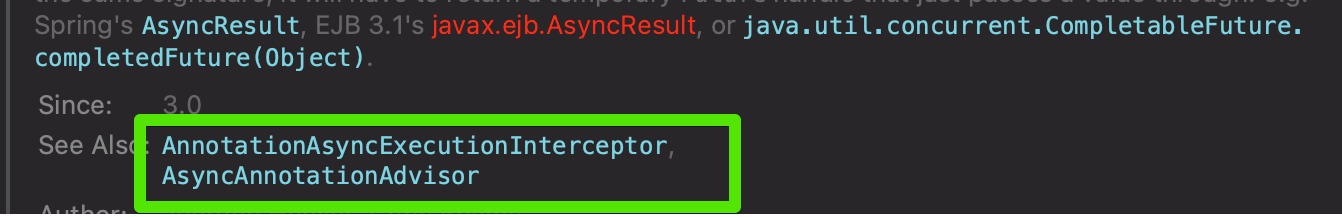 @Async 어노테이션의 공식문서를 보면 Advisor 가 있습니다. 그러면 해당 어노테이션은 AOP로 동작하는구나를 알 수 있습니다.