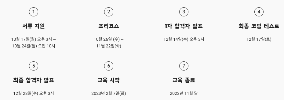 4기에서와 다르게 5기 모집 프로세스에서는 자소서를 제출하고 4주간의 프리코스를 진행했다. 프리코스를 진행하고 자소서 + 프리코스 로 1차 합격 여부가 나왔고, 대면으로 시험을 보고 최종 합격이 결정났다.