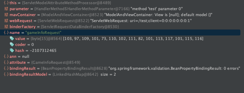 그러고 나서 attribute를 반환하는데, 이때 attribute는 바인딩 된 GameInfoRequest입니다.