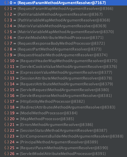 사진은 argumentResolver들의 종류를이고, 총 27개의 resolver들이 있습니다.