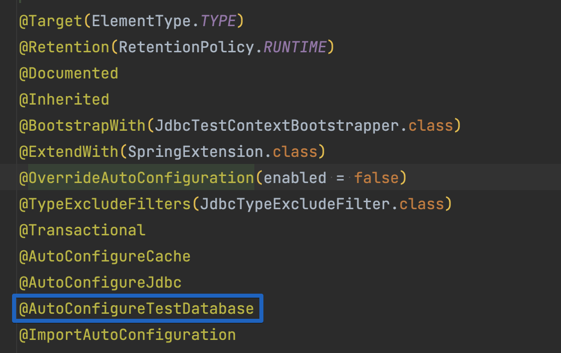 먼저 JdbcTest 어노테이션을 보니 많은 어노테이션들을 가지고 있습니다.