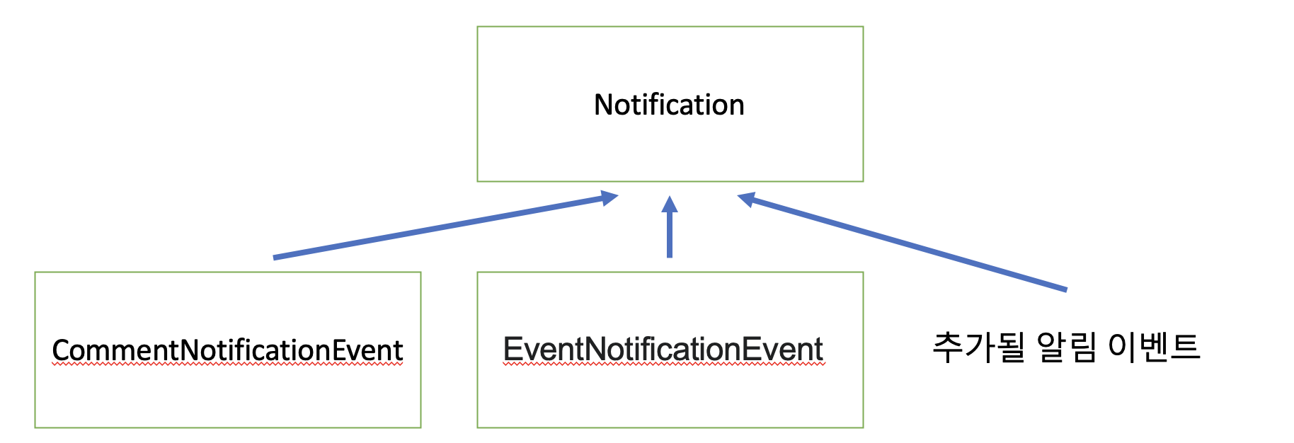 처음에는 알림이라는 도메인을 추상화하여 상속을 사용하면 되지 않을까?라는 생각을 했습니다.