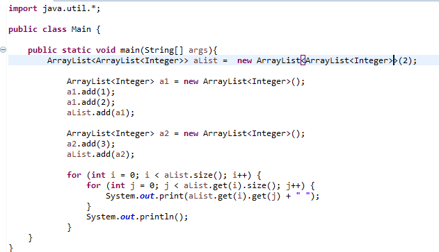 aList라는 ArrayList 형 상자 안에, a1이라는 ArrayList형 상자, a2라는 ArrayList형 상자가 있다고 생각하자.